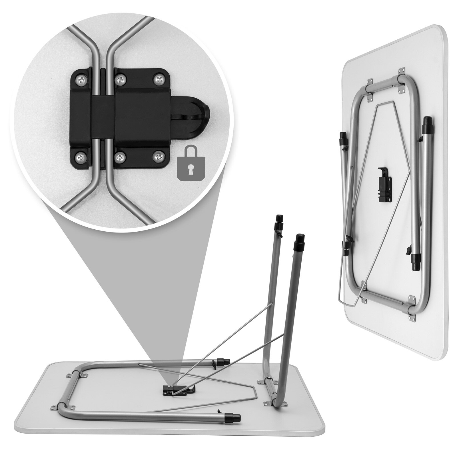 Skladací stôl je možné pomocou krídlových skrutiek plynule výškovo nastaviť od 50 do 69 cm a prispôsobiť tak oblasti použitia. Vyberte si sami a prispôsobte si ho svojim potrebám.